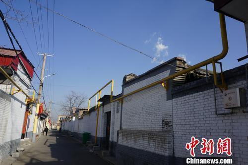 “煤改气”后,山西太原市南下温村家家户户都被鲜亮的黄色输气管道串联。汤琪 摄