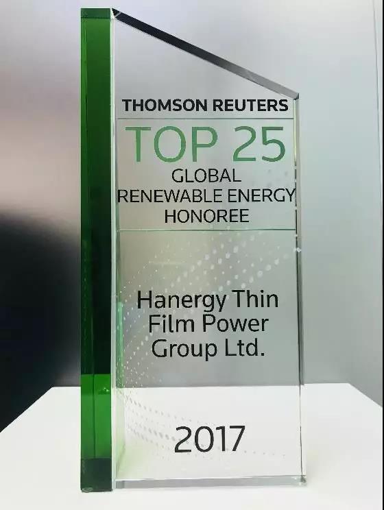 汉能荣获2017年度“全球可再生能源25强”奖杯