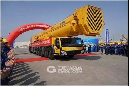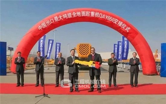 今年3月,全球最大的轮式起重机制造基地,徐工机械副总裁、起重机械事业部总经理孙建忠将QAY650全地面起重机金钥匙交付到北非用户手中