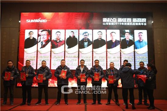 付出必有回报!在年会上,山河智能还对2018年度优秀经销商、2018年度各区域销售冠军进行了隆重表彰并颁奖。