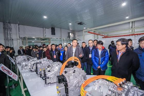 图为与会嘉宾参观盛瑞传动实验室一期
