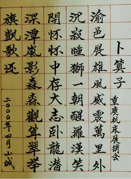 附:杨光平先生于2000年4月在重庆立嘉展上,作词《卜算子》的原稿。20年前的行业现状跃然纸上,清晰了模糊的记忆。