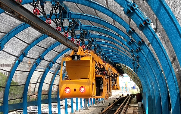 这台单轨吊于8月17日完成整机出产后,在公司改造升级的新辅运试验场进行了多天的工厂试验。技术工人用遥控器“指挥”着单轨吊在模拟巷道往返行进,上坡下坡,充分试验,各项性能指标达到设计要求,通过出厂检测,按期发往中煤旗下煤矿。(杨颖敏)