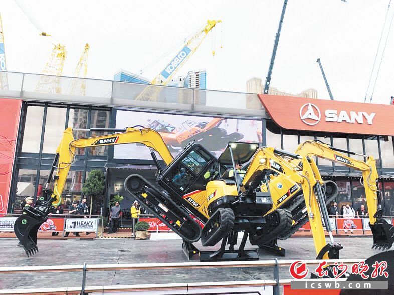 上半年,三一集团人均产值近300万元,创造国内行业新纪录。图为三一设备参加美国工程机械展。 企业供图