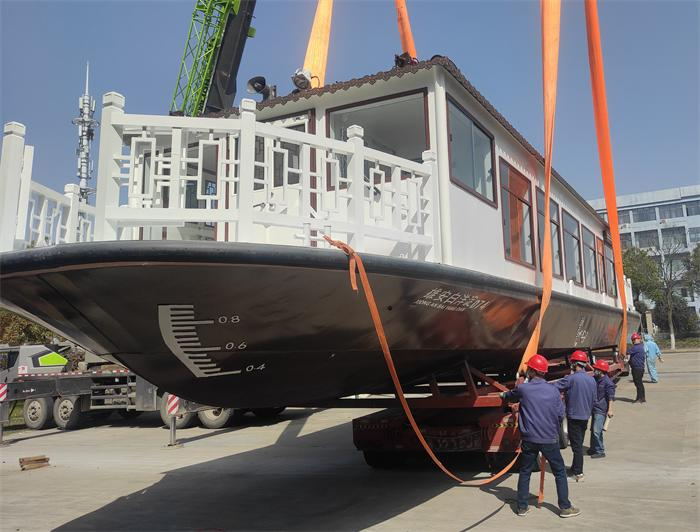 图为红阳公司职工在检查船艇吊装固定情况。(图文/唐龙威、万俊显)