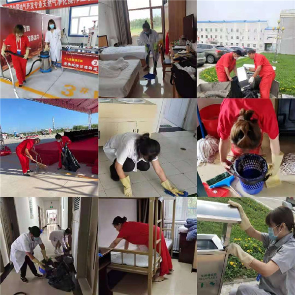 为迎接全国第三届天然气净化技能大赛在大庆油田天然气分公司培训中心顺利进行,有这样一群活跃在天然气分公司培训中心内外的人们,他们披星戴月、早出晚归,为这场盛会得以顺利举行,默默付出着,坚守着,他们来自——钻探工程公司钻井一公司综合服务分公司天然气业务承揽队。按照天然气分公司培训中心有关要求,积极落实各项准备工作,他们做出了周密而细致的工作安排,克服任务多,工作量大、人员紧等困难,全力保障天然气分公司培训中心筹备工作顺利进行。6月18日开始,钻井一公司综合服务分公司天然气业务承揽队全体员工,就投入到比赛使用的实操场地、住宿宾馆中进行了细致的集中清理、保洁工作。