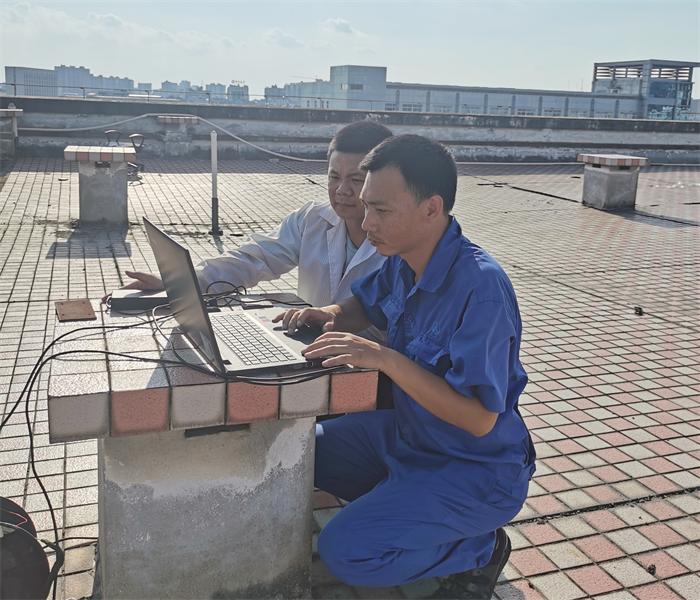 7月26日下午,为满足无遮挡的测试环境要求,航天三江险峰公司总装车间余亮、张先友在公司综合楼露台顶着炎炎烈日进行测试工作。一组产品测下来,两人虽然被骄阳晒得汗流浃背,但依然神情专注,测试工作没有丝毫松懈。(图文李响)