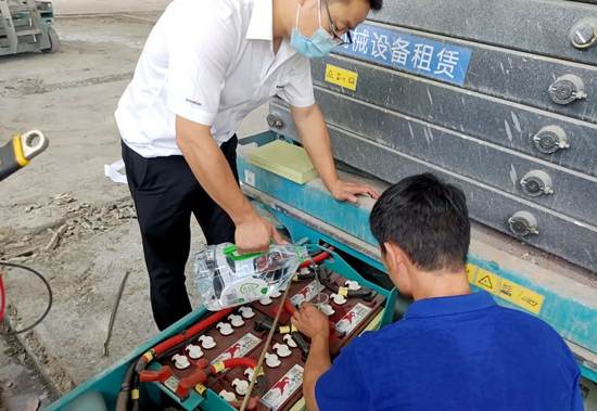 设备发过来之后就一直辗转工地,使用至今还没出现过故障,目前还只与设备见了一面。广州的谢总说到。在得知这一情况后,随行的服务工程师吴磊适时提示,设备的蓄电池可能需要维护,并就蓄电池的维护与保养的规则和重要性同谢总进行了交流。
