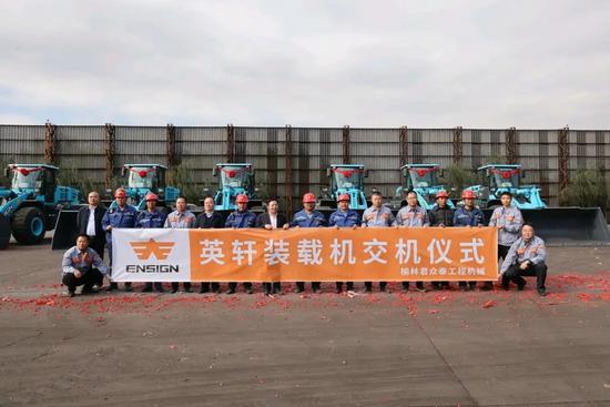 随着双碳目标、节能减排的政策推动,装载机市场需求升级,更节能更环保的电动装载机成为用户关注焦点。英轩重工凭借多年布局、先期规划,通过加大科研力量,与行业科研机构、重点高校等联合研发,让英轩电动装载机应运而生。在环保重点监管、节能减排更加严格的相关地区,许多客户纷纷要求“一试究竟”。而英轩电动装载机也不负众望,经受住了来自零排放零污染的环保需要和节省成本的客户需求的双重考验。因此,英轩在神木不仅进行了一场正式的电装品鉴会,而且成功在当地批量交机。17日上午,英轩重工与当地某大型焦化集团签署了战略协议,并在交机仪式上首次交付多台电动装载机。