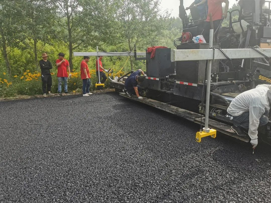 此时摊铺为面层,虚铺5公分,经过一个下午的施工,此工地已完成施工作业。此时客户公司总经理进行第二次验收,验收完成,并且表示摊铺机效果相当完美。
