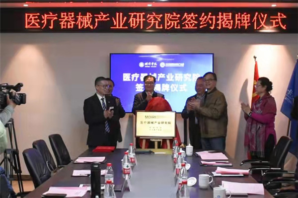 此次揭牌的医疗器械产业研究院由蚌埠学院与安徽卡尔森国际创新产业园联合共建,双方将在人才培养与就业、建设实习实训基地、人才共享、科学研究等方面展开合作。