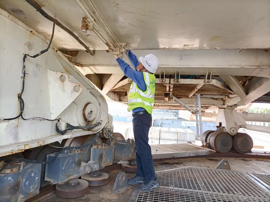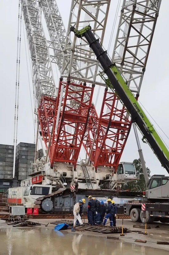 时间回溯到2021年年底,因为该吊装项目涉及到时间紧、任务重、影响大等诸多重要因素,为保证“玲珑一号”下部筒体的顺利吊装。临近春节前夕,工起服务备件部派遣履带吊服务支持室机动服务工程师丁文超,为ZCC32000NP设备全天候保驾护航,提供全方位服务。当接到派遣任务的时候,丁文超没有丝毫犹豫,毅然决然的背起行囊,踏上前往工程项目地的征途。