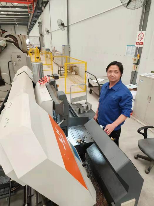 按照公司的生产安排,众多的紧急任务排出了下料先后顺序。他知道,自己每天多干一点,材料下得快一点,后面工序拿到材料就会早一点,交付节点就会往前赶一点,但他自己陪伴家人的时间也就少了一点,但他从无怨言。