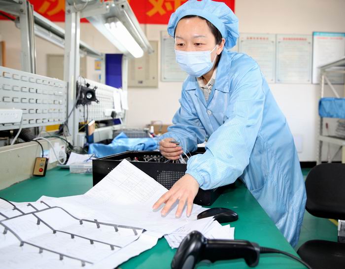 “我觉得可以把直流和交流分开布线,将轴流风机安装位置调整至原安装位置的正对面。这样还可以避免后续组件及系统测试时电流串扰。”“这个建议很好 ,马上改进!”这是 11月4日,险峰公司总装车间高级技师、技术能手赵琼与工艺人员的一段对话。