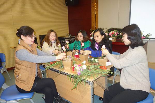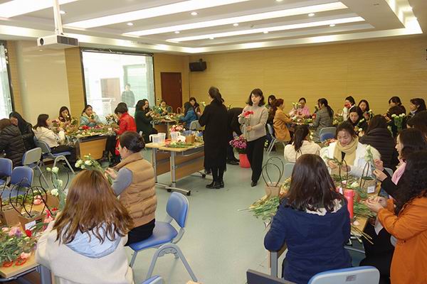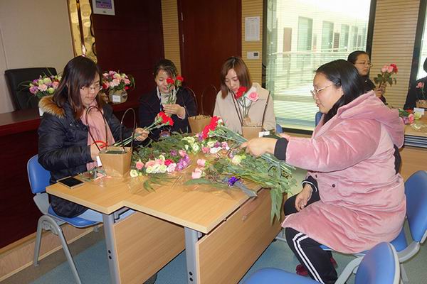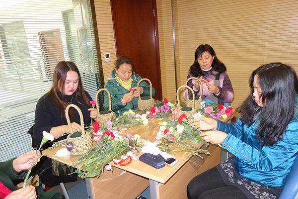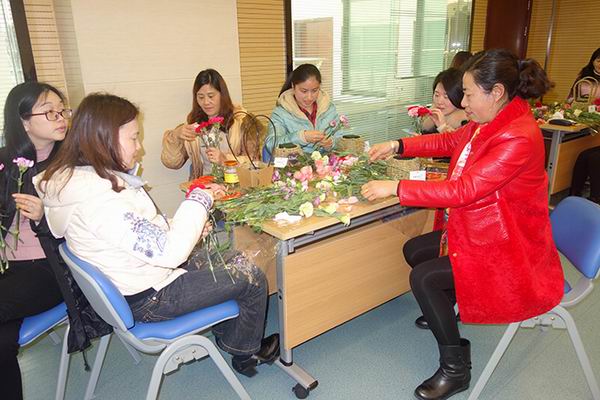为了使全体女职工度过一个愉快的节日,航天重型工程装备有限公司于3月8日上午,举办了一个别开生面的庆祝活动,邀请园艺老师为她们培训插花艺术,目的是让女人们永远保持青春美丽,成为永不衰落的日月,用自己的光芒照耀这个世界,也照耀自己美好的家庭!