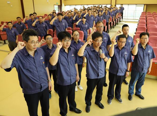 图为公司领导班子成员带头宣誓 (应福根摄文)