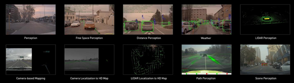 在基于 GPU 的强大服务器上完成训练之后,NVIDIA DRIVE Constellation AV 模拟器就可用于对最终放置在车辆内部的完整软件“堆栈”进行测试和验证。这种高性能的软件堆栈涵盖了自动驾驶汽车行驶的各个方面,从对象检测、深度学习和计算机视觉,到地图本地化和路径规划,一切都在 DRIVE Pegasus 上运行。