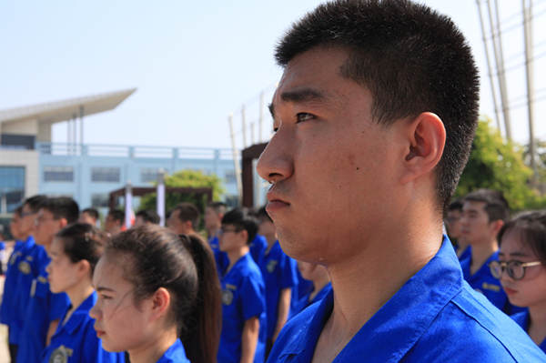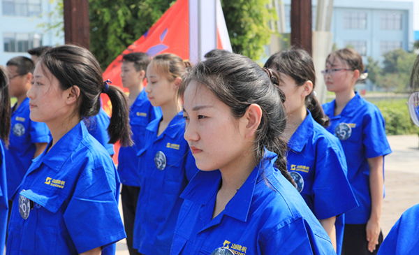 在热烈的掌声中,曹永信为军训营授旗,并宣布“山重建机2018年夏季军训营”开训。
