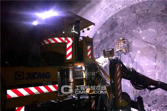 维保团队首先来到第一站——万龙至转枝莲公路红花梁隧道。该项目有一台徐工铁装生产的三臂凿岩台车进行施工,主要负责隧道开挖及锚杆打孔作业。公司为凿岩台车配备三名操作机手、一名维保人员及项目管理人员。目前项目进展顺利,右洞进尺超过1000米,预计明年下半年贯通。