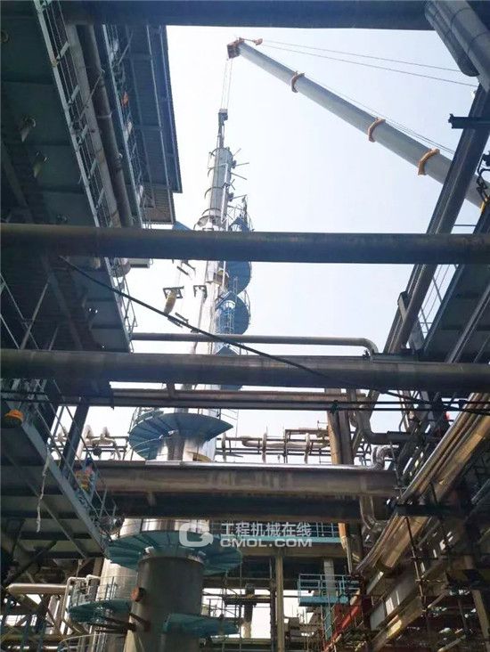在石化装置的新建、检修、改造等工程中,常常需要将一些设备吊入或吊出框架,由于受框架、周围设备及管线的限制,往往使吊装难度增大。上海金山石化,工程改造维修需求量大,设备较重、高度较高,徐工QAY650作为此项工程的责任担当正在进行着设备检修任务,其强悍的施工表现让在场的所有施工人员都赞不绝口!