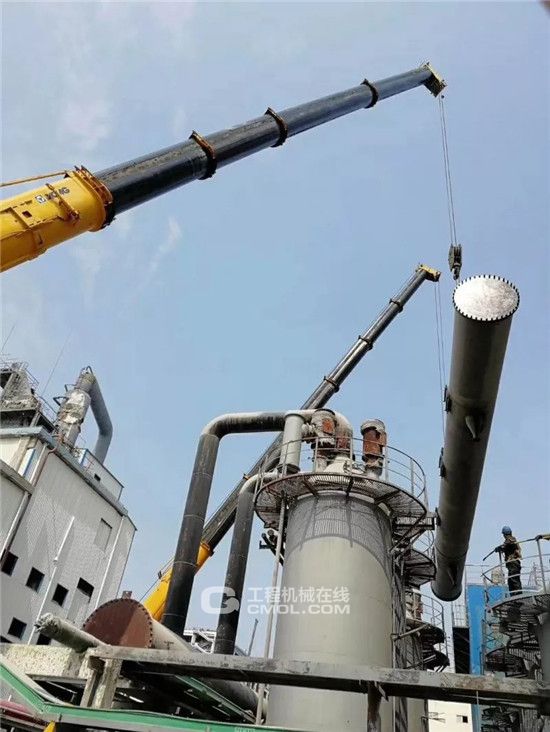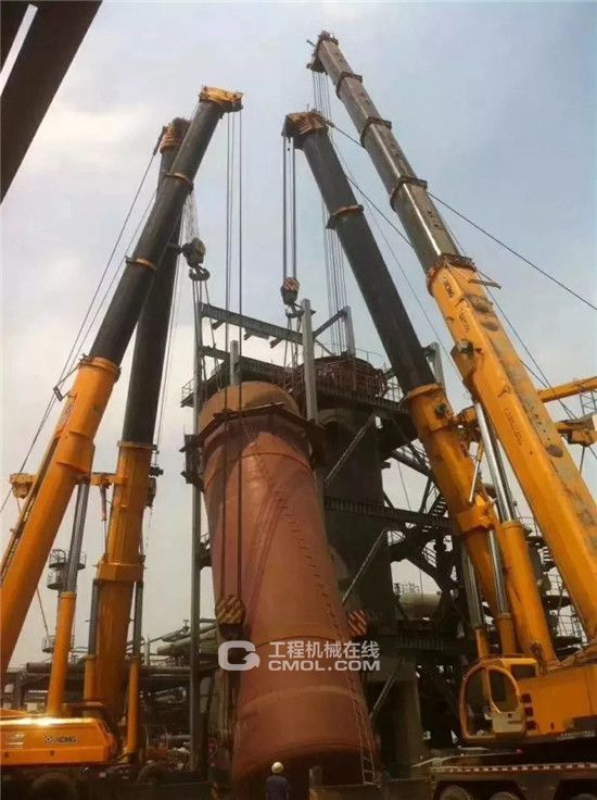 上海高桥石化设备检修,工程检修设备需求多,工程量大,所吊物体较重,安全性要求高。QAY650携QAY500、QAY300等三位小弟协同作业,完美配合,确保工程作业安全高效完成。