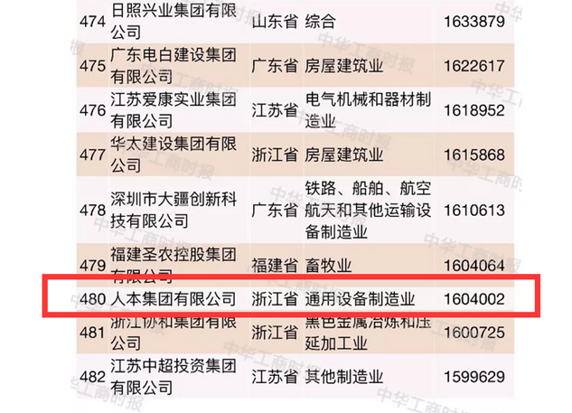 人本集团中国民营企业500强排480位