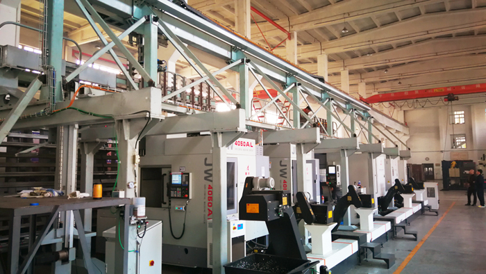2017年,沈飞联合华中数控与沈阳精锐数控机床有限公司共同建立了两条航空复杂结构件智能加工生产线,尝试从单机生产到智能化制造的转型升级。该生产线包括卧式加工中心4台(四轴2台,五轴2台)、生产线物料库及机械手1套、生产线中央刀库及机械手1套、生产线管控系统1套。