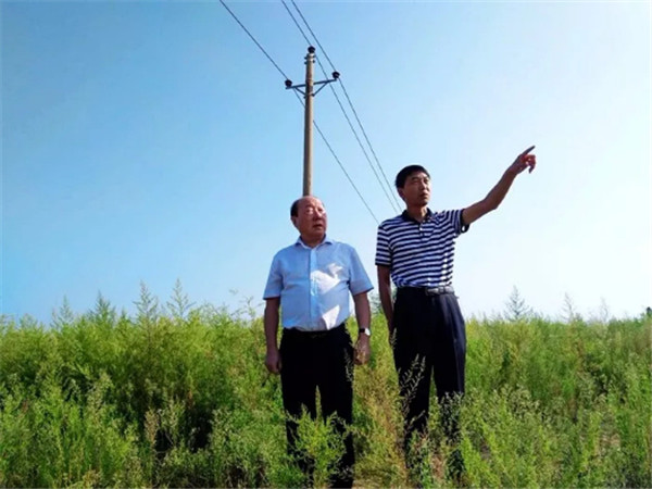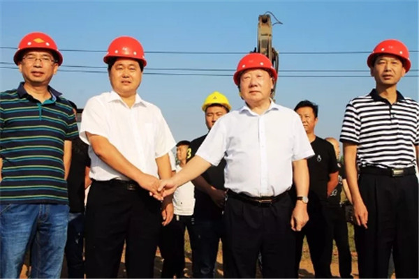 董事长张铁山(左)视察施工现场