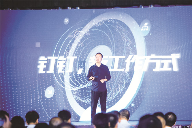 图为阿里钉钉CEO陈航在发布会现场演讲。