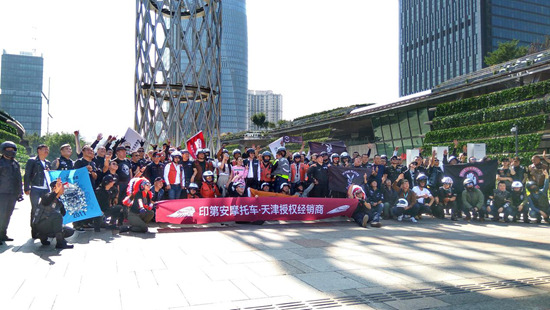 在今天的开业仪式现场印第安·中国销售经理汪洋先生也特意代表印第安中国赶到天津为印第安·天津的开业仪式带上祝福,王经理表示感谢天津市鸿发投资集团总裁周中发先生和副总裁周圣瀚先生能够如此信任印第安,我们相信在印第安·中国和天津鸿发集团的共同努力下印第安·天津也将更加红火。除此之外在开业仪式当天还有来自京津地区的数百名骑手朋友驾乘者自己的爱车来为印第安·天津助阵,他们用震耳欲聋的轰鸣声来为印第安·天津加油喝彩。