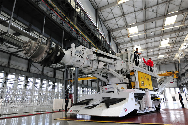 该掘进机是中信重工在引进德国Wirth技术全部知识产权的基础上,研发完成的新一代悬臂式硬岩掘进机。它采用世界领先截割破岩技术,各项技术性能卓越,智能化程度高,具有截割能力强,定位截割范围大、效率高,截齿消耗率更低等一系列特点。其80MPa经济截割硬度在纵轴掘进机产品中属于世界第一;其首创的方形伸缩截割臂技术,定位截割最大高度7.9m,最大宽度9.5m,两项指标全球第一。其智能、可靠的安全控制系统,可适应多种工况,可广泛应用于铁路、公路、地铁、引水等各类工程隧道施工和盐矿、磷矿、金属矿巷道掘进,并可应用在在城市地下基础设施建设、市政排水涵洞开挖等地下空间施工中。(张琳 雷正道 摄影报道)