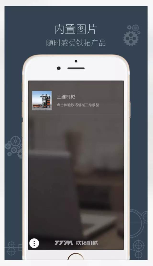 《铁拓机械AR》是铁拓机械专门定制的AR增强现实软件。铁拓机械将最新的AR技术融入工程机械,通过虚拟三维模型及视频,让用户感受每款设备的细节,深入了解设备,发现工程机械的美感。通过AR软件,识别指定的设备识别图,即可观看相应沥青搅拌设备的三维模型或视频介绍。