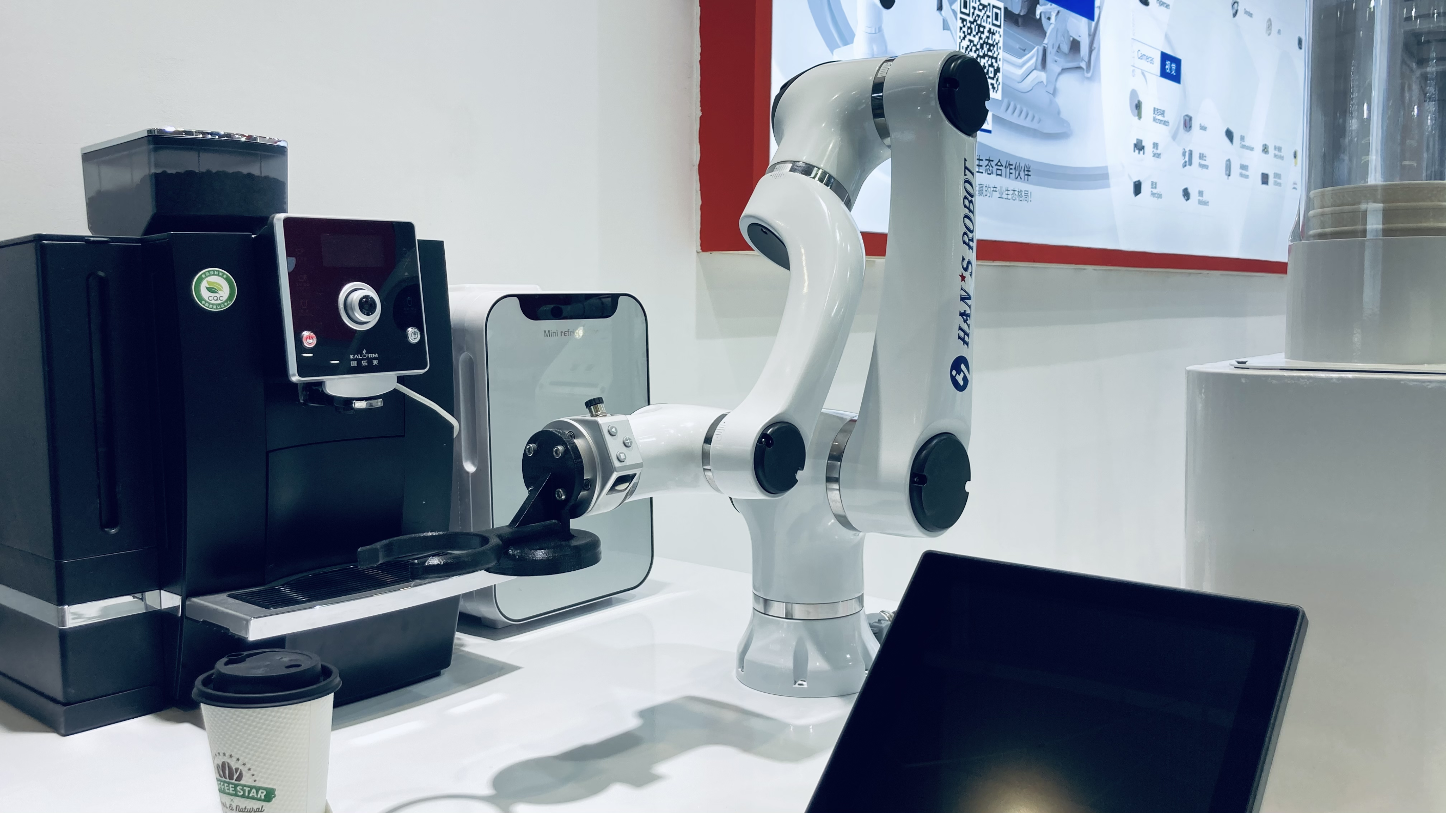 大族机器人同合作伙伴联合打造机器人咖啡吧,以协作机器人作为基础,融合咖啡机、牛奶冰箱等咖啡制作模块,全自助点单,无人化操作。减少传统咖啡经营的场地限制,接上电就能开业。解决了目前服务行业对于高人力成本高租金成本的痛点,打造咖啡爱好者能随时随地,喝得起、喝得上、喜欢喝的一杯现磨咖啡。