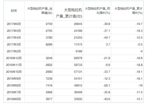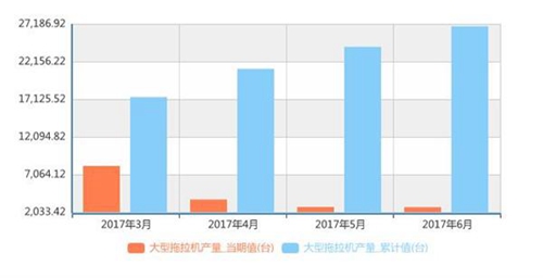 以下为2016年6月至2017年6月我国大型拖拉机产量统计: