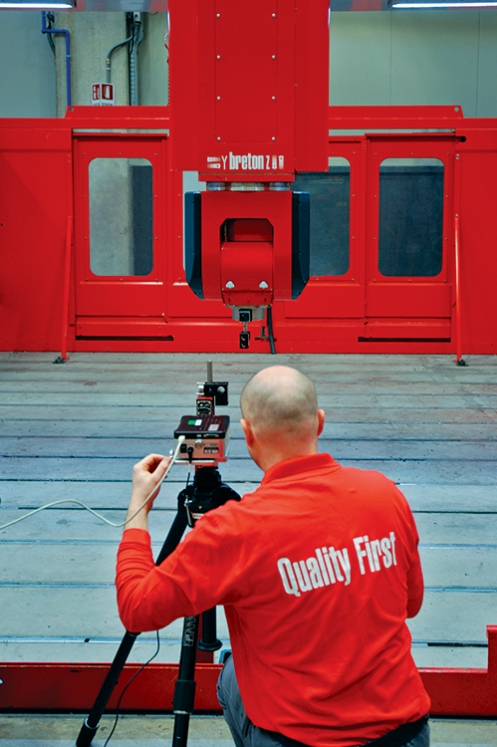 当一台机床装配完成后,Breton使用XL-80激光校准系统来测试机床的定位、线性和角度误差。这些质控措施会在Breton生产的所有机床上执行。此外,Breton每年还会对全部生产设备执行一次此类检测,而且一旦发现精度偏差,还会重复执行测试。在Breton使用其他供应商的系统来检测长度超过四米的机床轴并遇到测试数据不一致的难题后,他们选用了XL-80系统,因为该系统不存在那样的问题。