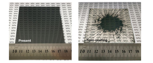 图说:韩礼元团队采用一次成形压力辅助制备方法效果优于以往旋转涂布溶液法