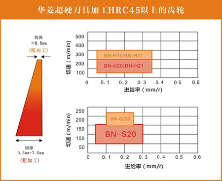 华菱超硬PCBN刀具硬态车削齿轮的切削参数表: