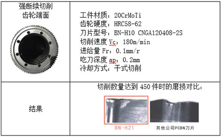 采用华菱超硬PCBN刀具硬态车削齿轮,加工效率高,成本低,配合车床代替以往多台立式磨床的生产配置,降低工厂建设费用,经济效益显著。