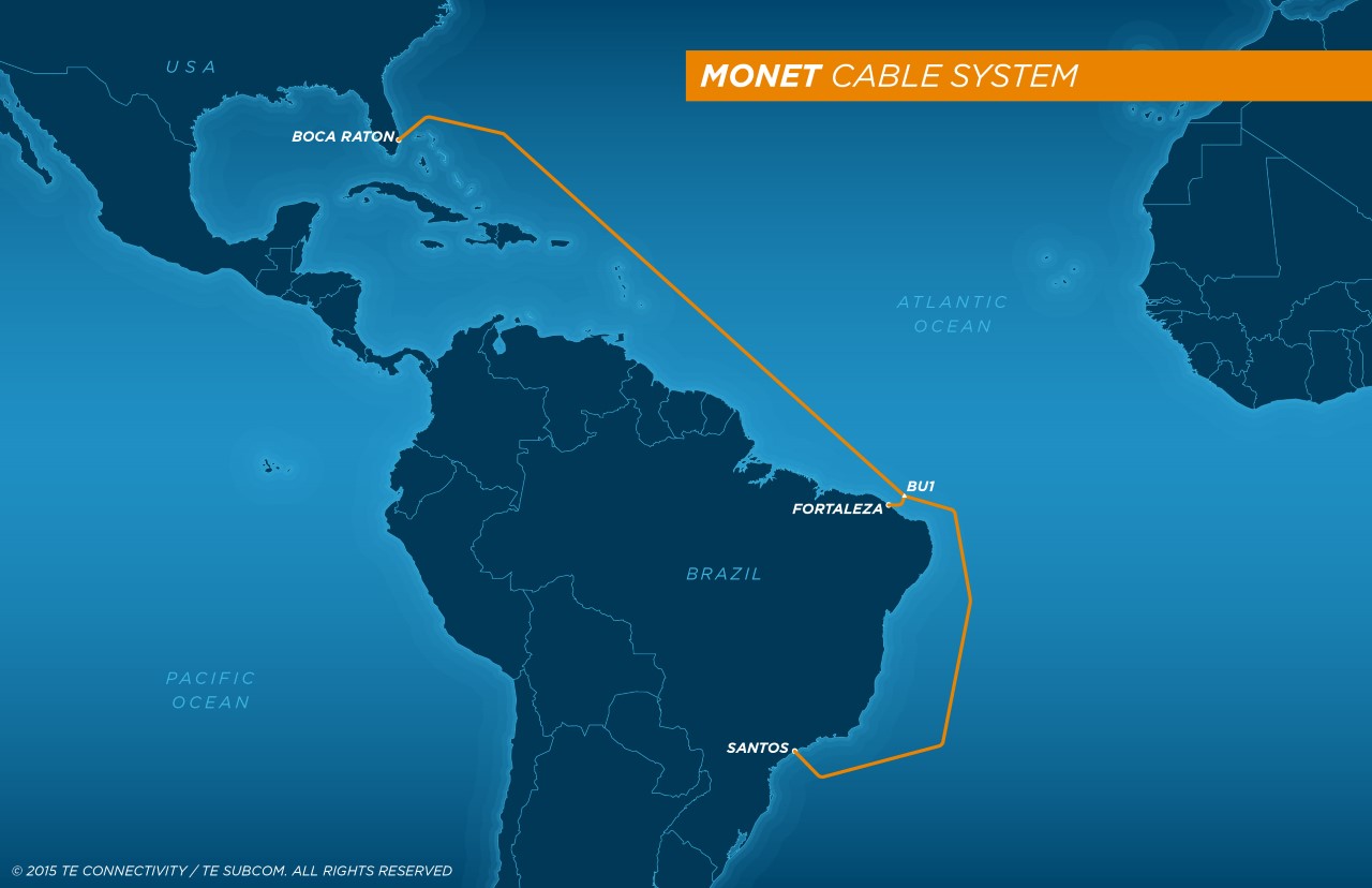巴西Algar电信、安哥拉电缆、乌拉圭Antel电信、谷歌和泰科电子TE SubCom日前发布联合公告称,连接美国佛罗里达州和巴西的海底光缆系统Monet已经进入准备投产阶段,预计不久将投入商用。