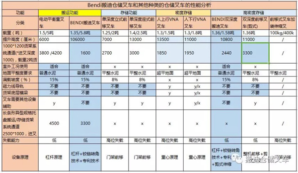上图【搬迪仓储叉车与各类叉车的性能比较】