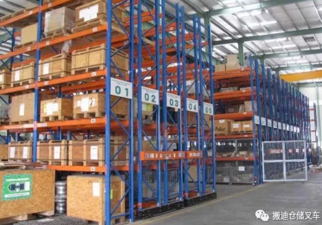 搬迪仓储叉车在双深度货架系统的应用:(保税区企业和冷库企业,地坪租金高,土地租金占物流成本比重高的物流企业,比如:机场附近的物流企业适用)