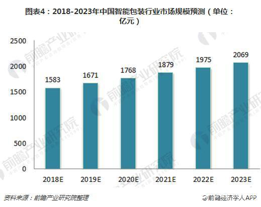 近年来,材料科学、现代控制技术、计算机技术与人工智能等相关技术的进步,带动了智能包装的飞速的发展。随着中国市场化进程的加快,国民收入的提高以及全球品牌商品的进入,一个相当大的零售和消费市场正在中国形成,并且快速增长。市场的快速形成与成长,势必拉动智能包装的迅猛发展。前瞻产业研究院预测,到2023年,中国中国智能包装行业市场规模有望突破2000亿元。