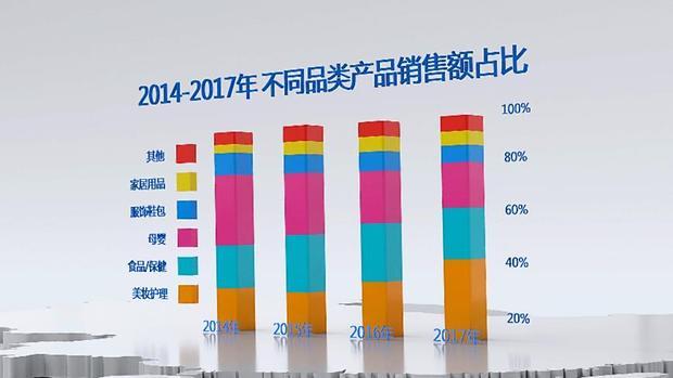 从2014年至2017年的数据看,母婴、美妆、食品保健品一直都是最热销的产品品类,母婴、美妆、食品保健品占据销售额的近80%。近几年,母婴产品销售额有所下降,但是美妆护理品却稳步提升,2017年,美妆护肤品已占各品类销售额的40%。