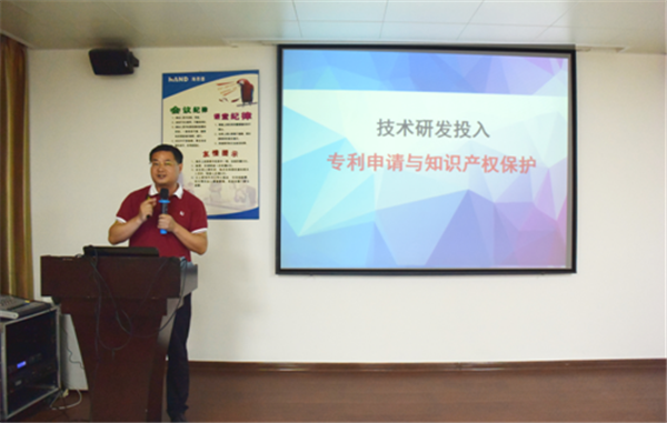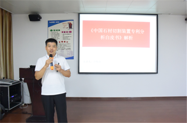 随后,海恩德机电公司陈鹏奇向与会人员介绍了公司的专利发展及管理情况。海恩德机电是国内石材机械龙头企业,其中矿山锯单品占据市场40%左右的份额。