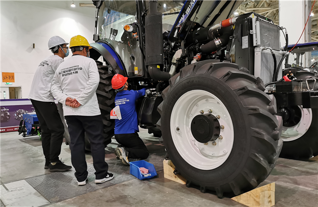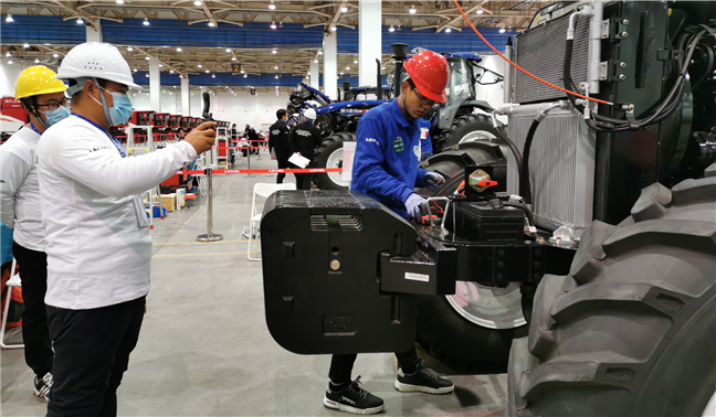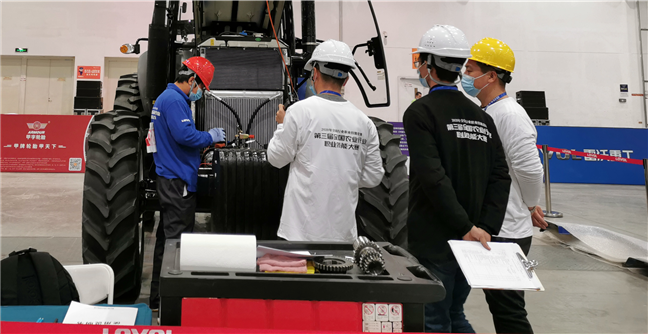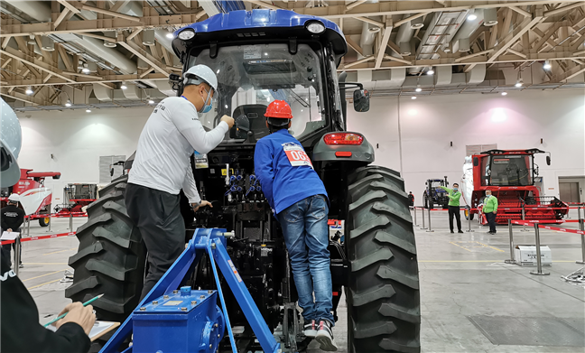 据介绍,实操阶段比赛分两个项目:一是拖拉机悬挂旋耕作机业机组综合故障诊断与排除,二是收割机综合故障诊断与排除。两个项目的规定时间分别是70分钟和50分钟,比分权重分别为60%和40%。选手在规定时间内要故障排除,满足相应产品使用说明书及维修技术手册要求,最后完成启动机器操作。