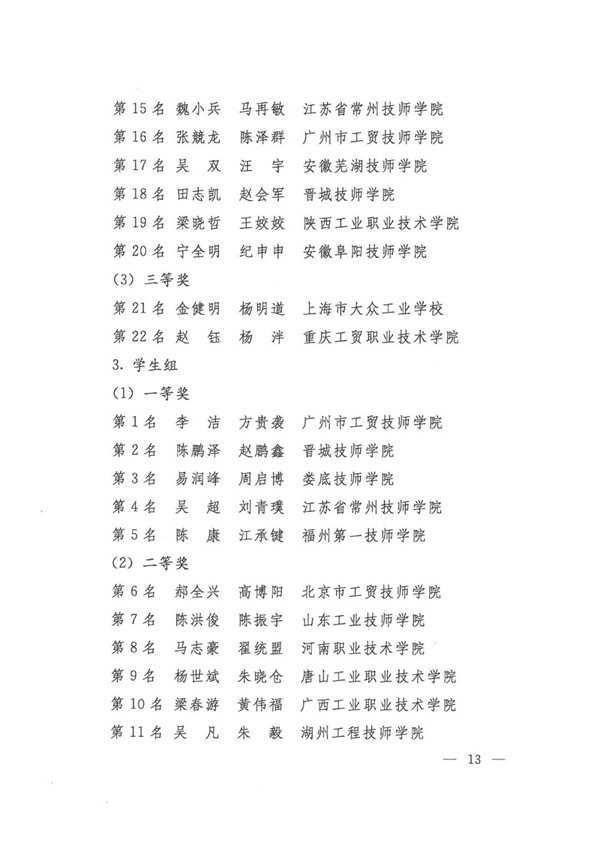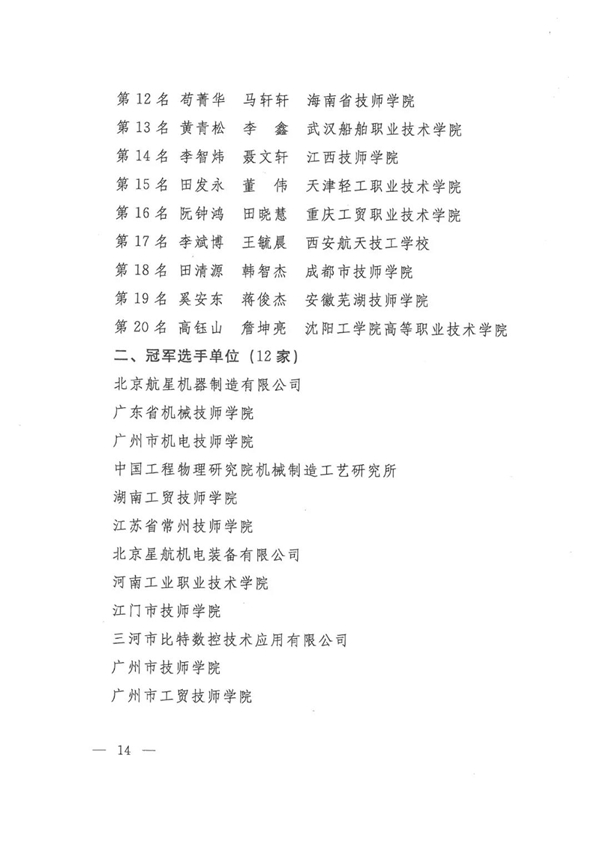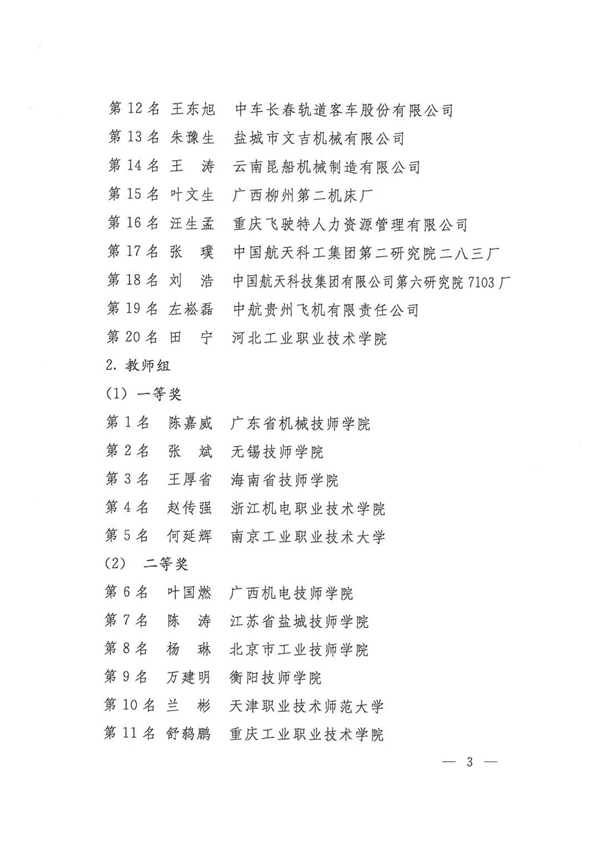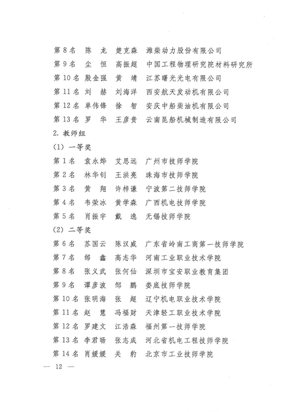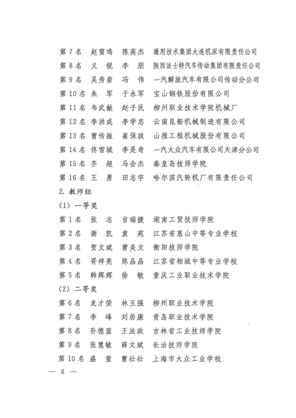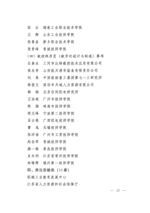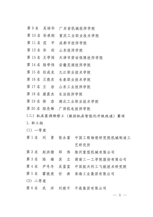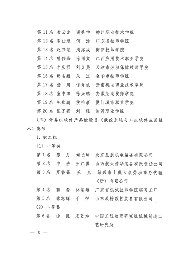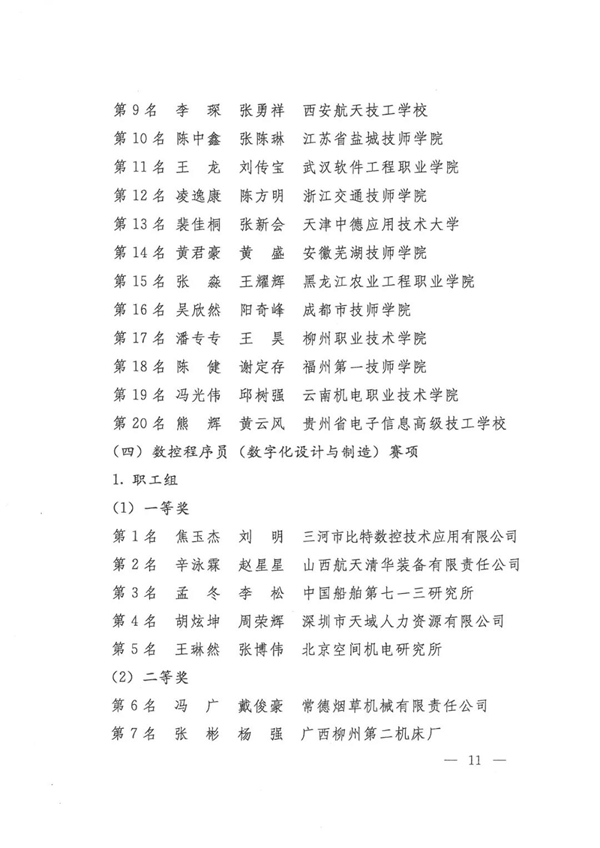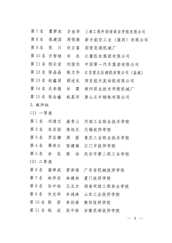 第九届全国数控技能大赛获奖名单