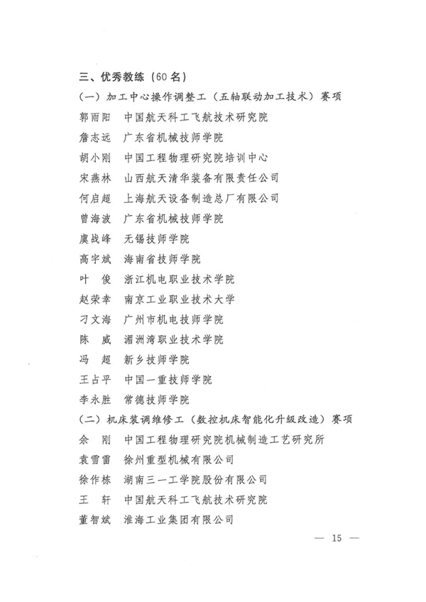 第九届全国数控技能大赛获奖名单公布