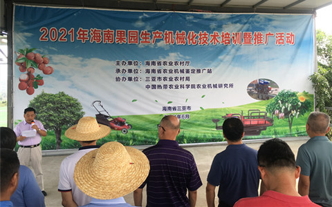 6月22日,由海南省农业农村厅主办,海南省农业机械鉴定推广站承办,中国热带农业科学院农业机械研究所和三亚市农业农村局协办的海南省果园生产机械化技术培训班暨农机推广活动在三亚市举办。海南省各县市农机主管部门、果园种植大户、特邀的农机产销企业共计160余人参会。培训班由海南省农业农村厅农机化处任良勇处长主持,海南省农业农村厅副厅长赵英杰和中国热带农业科学院农业机械研究所霍剑波书记分别致辞。