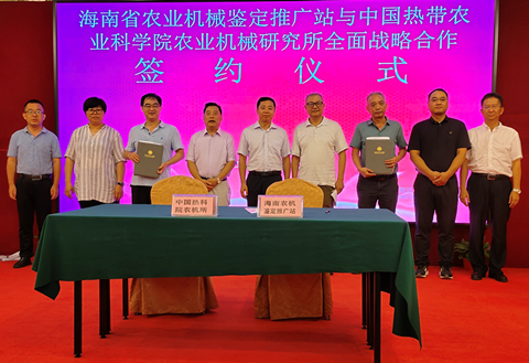 为加强农机化交流与合作,共同推进海南农机化事业的发展,助力乡村产业振兴,海南省农业机械鉴定推广站与中国热带农业科学院农业机械研究所举行了农机化全面战略合作签约仪式,与会全体代表共同见证了这一重要时刻,双方将在热带特色作物的生产全程机械化、农业机械联合研发与鉴定及典型农业废弃物综合利用技术与装备推广等方面开展合作。