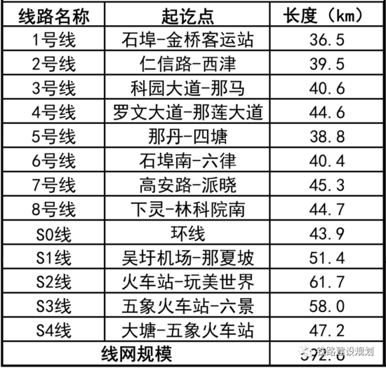 线网规划中结合主城区规划空间结构及对外铁路、公路枢纽布局,构建了环线及8条轨道普线,支持城市主、副中心的规划发展;结合空港新城、武鸣副城区、伶俐六景新城、那马与大塘组团这四个城市指状拓展方向构建了4条轨道快线进行了服务覆盖,拉近了外围新城与主城区的时空距离,支持南宁大都市区的规划发展。